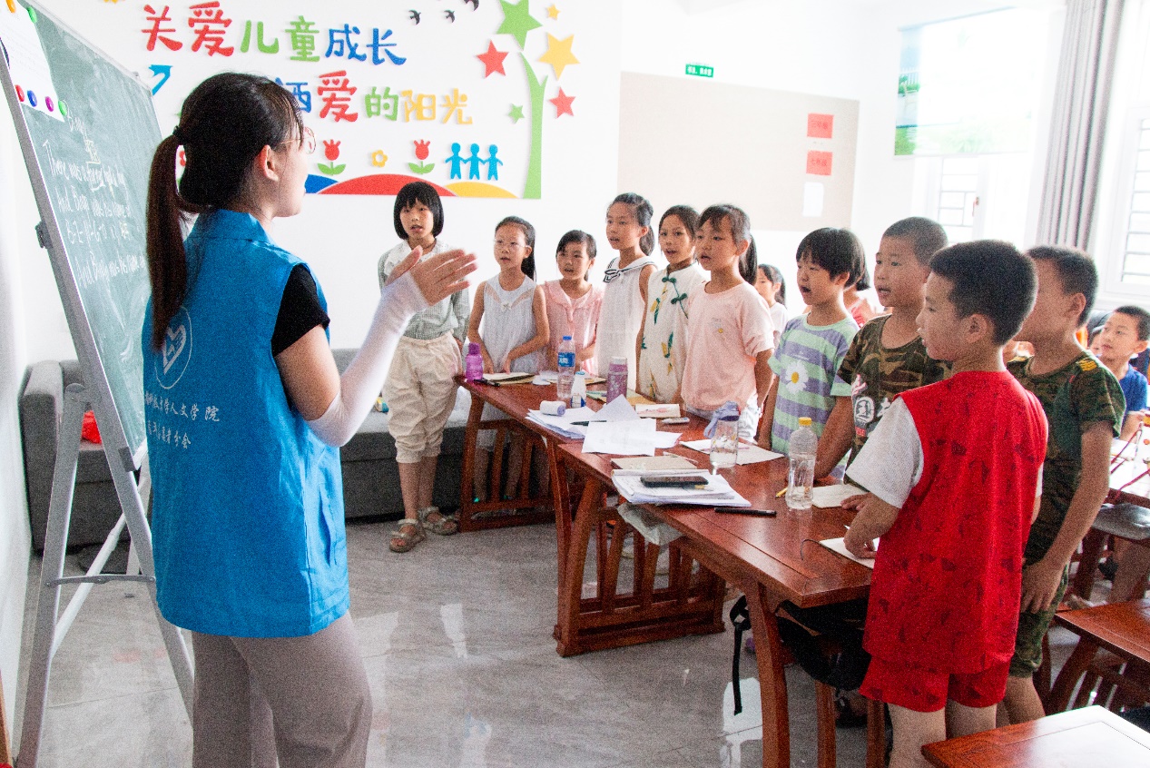 7月14日,是华体会注册华体会注册暑期“三下乡”社会实践活动第四日。下午4点50分,嘹亮的上课哨声准时响起。“上课啦!上课啦!”被太阳炙烤的谭家垅村显得有些沉闷,但孩子们的兴奋没有因燥热的天气消减,急忙回到座位,等待音乐课的到来。