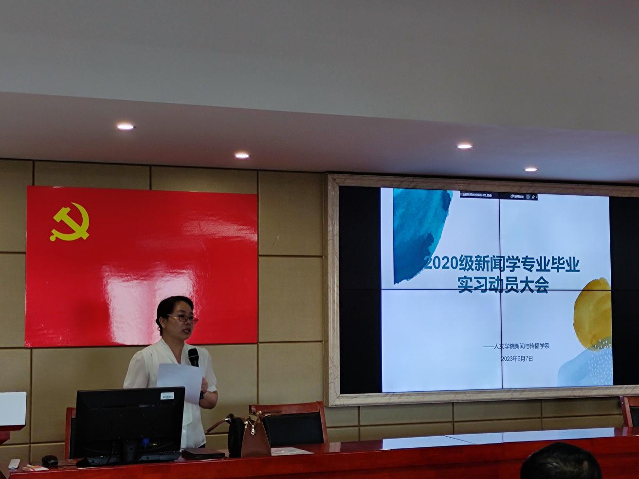 6月7日下午,我院2020级新闻学专业毕业实习动员大会于立言楼B4-1室顺利召开。本次大会由华体会注册新闻系主办,华体会注册副院长袁星洁,新闻系主任刘艳凤、副主任王超群、新闻系老师、20级本部及潇湘新闻专业学生参加本次会议,会议由刘艳凤主持。