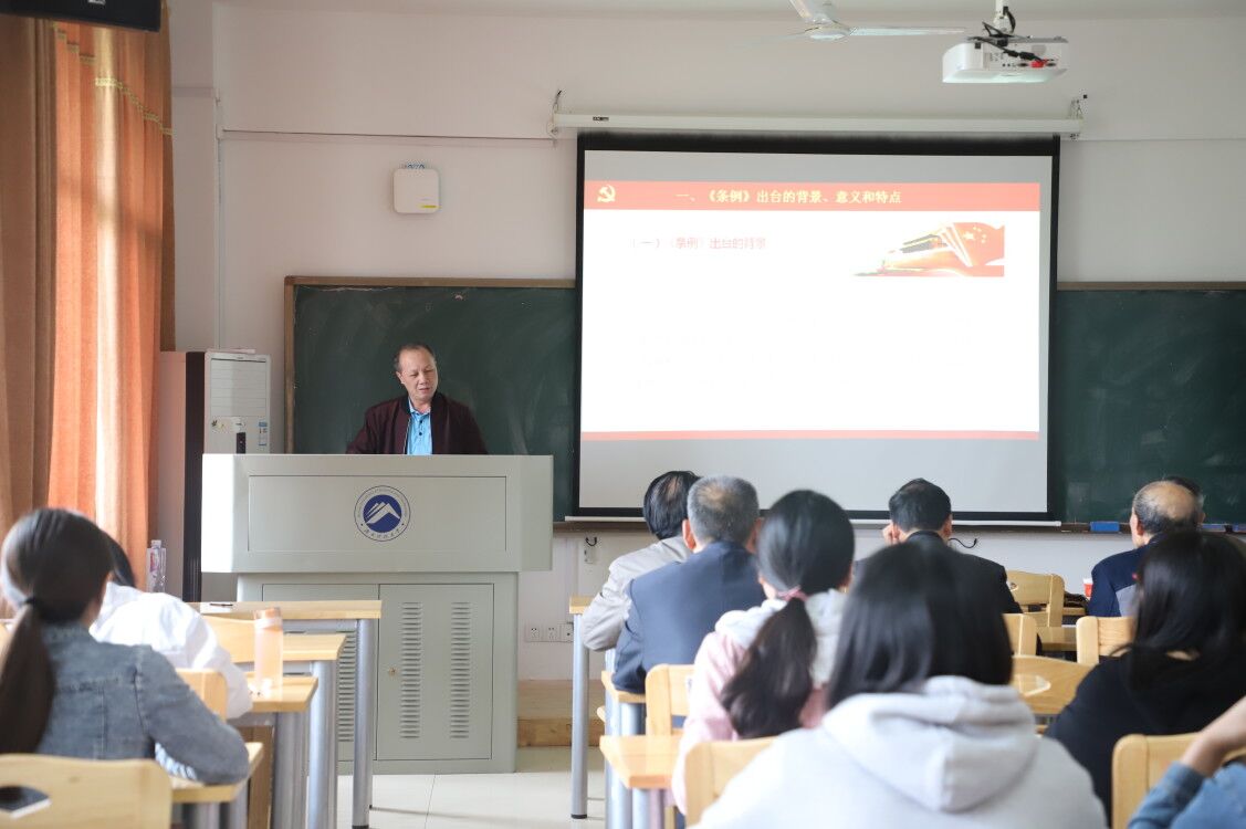 随后,贺春生书记为在场的党员同志们上了一堂精彩的党课。在党课中,贺春生书记围绕《中国共产党支部工作条例》,从三个方面出发对其进行解读。首先,《条例》的出台是制度治党的重要举措,它不仅内容系统全面,而且政治功能突出,这对于加强党中央的全面领导具有重要意义。其次,《条例》为支部工作提出了新的要求,党支部除了要发挥直接教育党员、管理党员、监督党员等作用外,还要根据不同党支部的实际,弄清党支部的重点工作任务。最后《条例》要贯彻于实践当中,党支部的建设是党中央进行组织体系建设的基本内容,也是管党治党的基本任务,更是检验党建工作的基本标准。党支部要强化对各个党员的考评,提高对支部建设的认识,要把支部建设真正落在实处。
