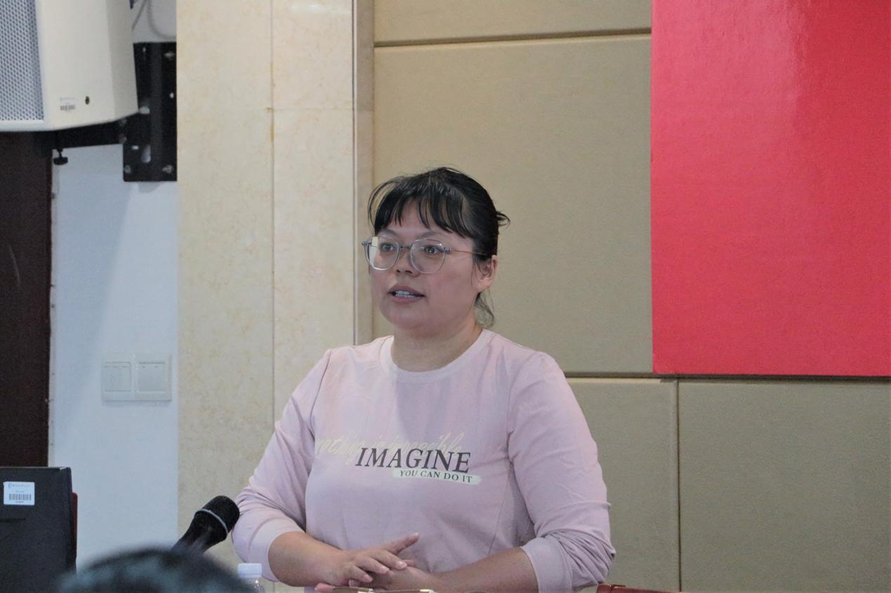 在刘艳凤对老师们的发言进行简要总结后,成功推免与考研录取的五位19级学生依次上台分享各自的考研经验。成功推免到暨南大学的张秋月同学阐述了与面试相关的经验,她谈到:“要注意说话的逻辑性,考试前多注重往年的真题,在英语面试中要注重流畅度,最重要的是保持平稳心态。”考研录取到西南大学的周莉同学则表示可以跟随网上的博主调整自己的考研进度,确保自己合理分配时间。