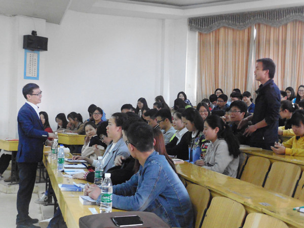 一个多小时的演讲后,提问环节将整场讲座气氛掀到最高潮。“您是怎样将自信和帅气变为一种生活常态呢?”12级历史二班的程俊一提出他的疑问,现场爆笑,掌声连连,尹书记风趣爽朗地回答:“首先是要穿着帅,我穿的就是韩版的外套和衬衫。除此之外,很重要的就是人格魅力,我们要用品格去感染和引导别人!”