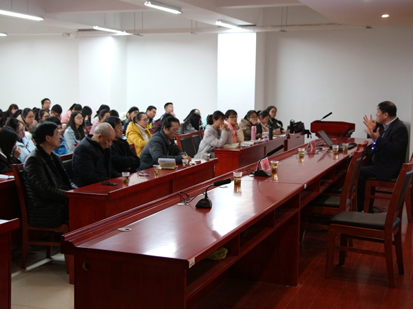3月20日下午,中国辞赋学会会长、南京大学文学院博士生导师许结教授做客我院“人文大家论坛”,在文科楼B4-1学术报告厅为我院师生带来了一场主题为《经典阅读与人文情境》的学术讲座。湘潭市政府督学郭务强先生,艺术学院原院长曾景祥教授,华体会注册吴广平教授、周平教授、李文浩博士及其他师生共两百余人到场聆听了本次讲座。讲座由吴广平教授主持。