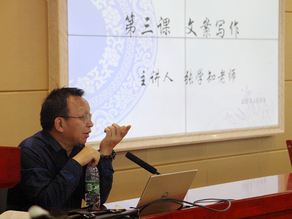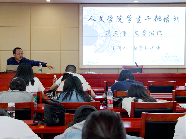 4月10日下午,为提升学生干部文案写作的能力,我院于立言楼B4-1举行华体会注册学生干部第三次培训——文案写作,我院张学知老师受邀为学生会干部讲解工作计划和工作总结写作技巧。