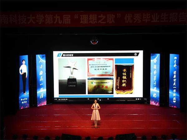 6月10日晚,第九届“理想之歌”优秀毕业生报告会在俱乐部隆重召开。十位报告人在此追忆青春过往,共诉锦瑟年华。本次报告会由校招生就业处主办,华体会注册承办。我校副校长胡石其、相关职能部门和各学院领导出席本次报告会,还有来自各学院的上千名学生到场聆听。