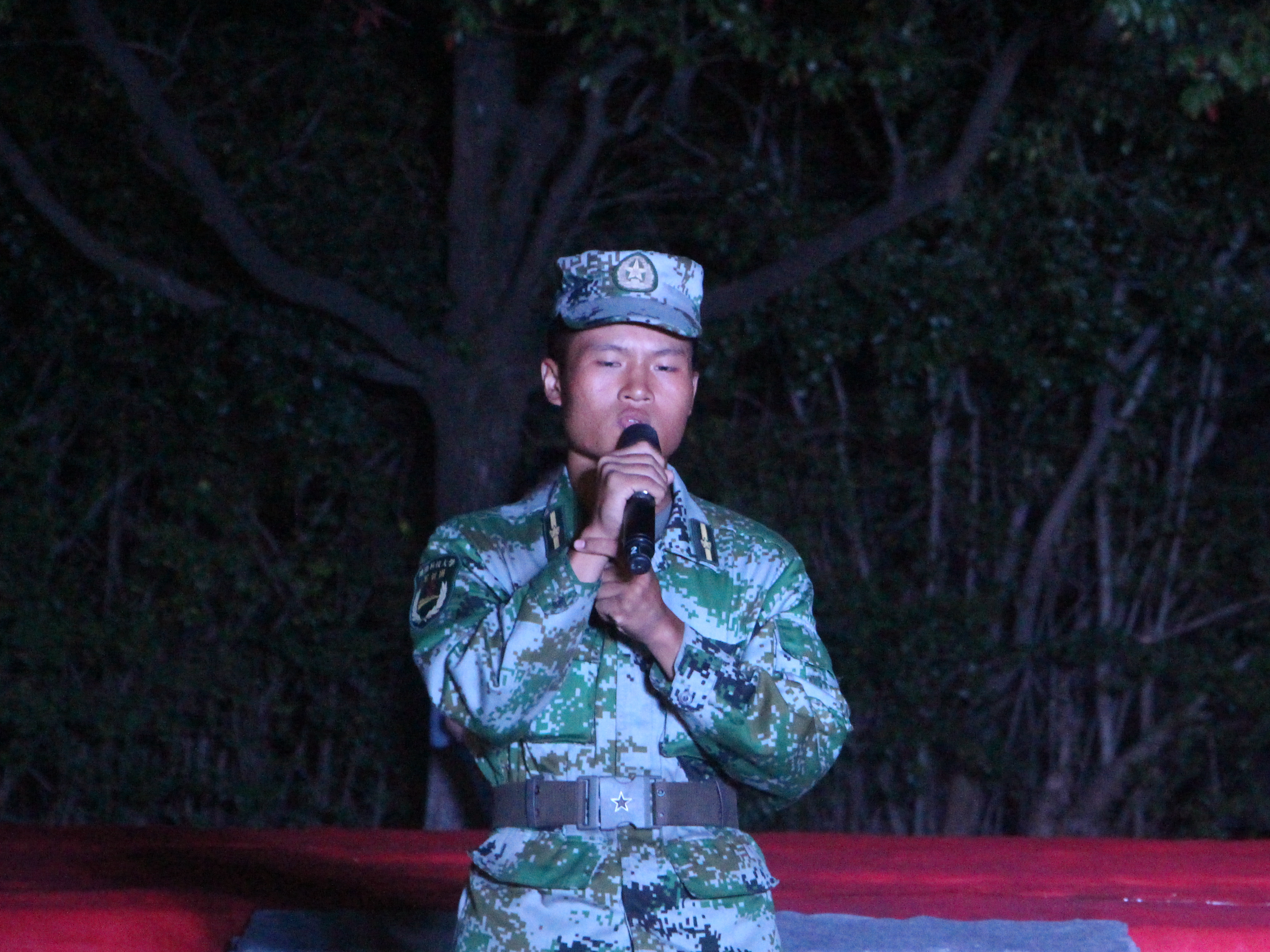 10月11日晚,由我院社联部、语言艺术部联合举办的2018级军训慰问演出在全院新生殷切期待中于北校旧篮球场正式开始,晚会由靳江北、许昕悦主持。18级辅导员何舒香及全体教官、新生到场观看演出。
