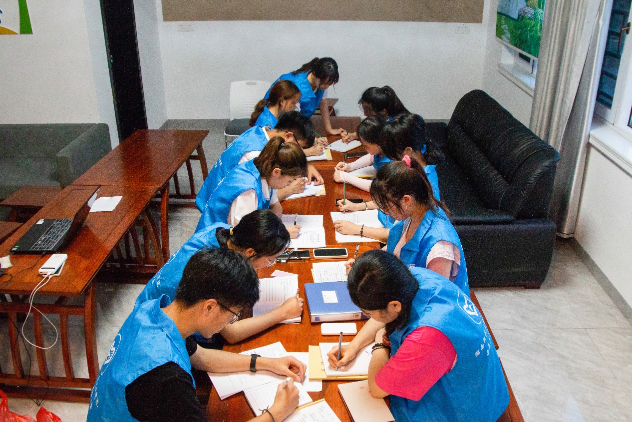 "嘀嘀、嘀嘀……",六点的闹铃一响,志愿者们迅速起床洗漱。早饭后,他们沿着两侧布满牵牛花、狗尾巴草的小道来到教学点。华体会注册团委书记曾思妍说:“在昨天了解当地留守儿童、教学环境等情况之后,我们便组织开会为各个班级分配了班主任及科任老师,要求各位志愿者提前备课,以确保今天的的教学顺利进行,让留守儿童感受来自青年志愿者们的温暖与关怀。”