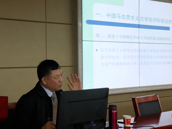 12月11日下午,湘潭大学学术评价与发展委员会副主任委员季水河教授应邀于立言楼B4-1举办以“中国马克思主义文学批评阶级论的重新审视”为主题的学术讲座。我院院长刘奇玉出席了本次讲座,讲座由李胜清教授主持,吴广平教授、萧祥彪副教授、胡铁强副教授、胡志明、李文浩、邓桂英等老师和研究生代表以及部分16、17级汉语言文学专业学生到场聆听。