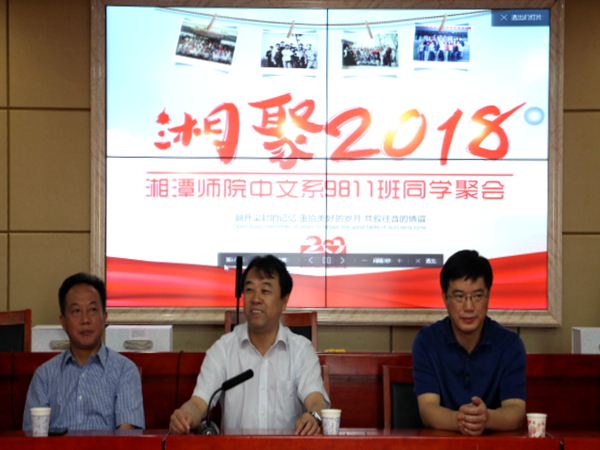 10月4日上午,我校原湘潭师范学院中文系9811班的校友们阔别十多载重回母校,于立言楼B4-1召开同学聚会。师生们回忆往昔,笑谈峥嵘岁月,共话温情。副校长胡石其,校党政办主任戴树根,华体会注册院长刘奇玉,校友工作办公室主任何正良,艺术学院党委书记曾志东等老师出席。