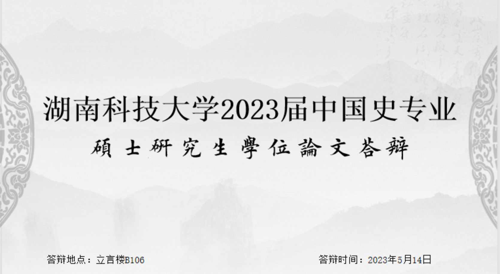 5月14日,华体会注册2020级中国史专业硕士研究生学位论文答辩于立言楼B106如期举行。本次答辩邀请湘潭大学章育良教授担任答辩主席,湘潭大学吉成名教授以及我院徐红教授、金身佳教授、周方高教授、聂志军教授担任答辩委员。2020级中国古代史方向8位硕士研究生参与此次答辩。